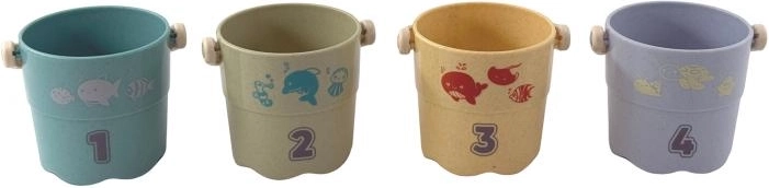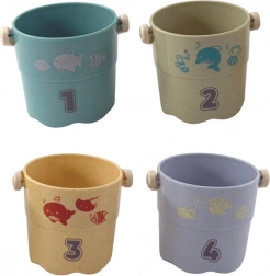 Ein niedliches Set aus Wassereimerchen begeistert jedes Baby und Kleinkind. Geeignet für Badewanne, Strand und Sandkasten. Fördert das Spielen mit Wasser, die Entwicklung der Feinmotorik sowie das Lernen von Farben und Zahlen. Fröhliche Farben, einfache Handhabung und universeller Einsatz machen dieses Set zum beliebten Spielzeug für das tägliche Baden.