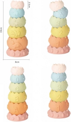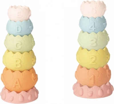 Entdecken Sie den fröhlichen Stapel-Turm, inspiriert von Dinosaurier-Eiern – ideal für erste Erkundungen der Welt. Das Spielzeug unterstützt die Feinmotorik, die Koordination und das logische Denken der Kinder und motiviert zugleich zum selbstständigen Spiel.