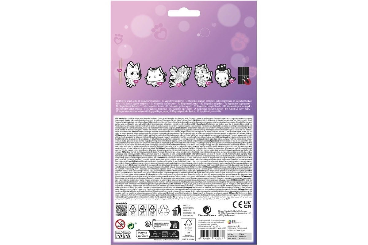 Nehmen Sie den Kratzstift, kratzen Sie das Motiv vorsichtig frei und enthüllen Sie leuchtende Farben. Befestigen Sie das fertige Bild am Kühlschrank, an der Tafel oder an jeder metallischen Oberfläche und freuen Sie sich über eine selbstgemachte Dekoration.