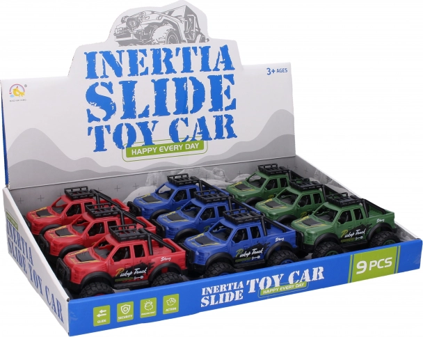 Geländewagen mit Schwungrad mit einer Länge von 13 cm ist das ideale Spielzeug für jeden kleinen Rennfahrer. Es ist in drei attraktiven Farben erhältlich: Rot, Blau und Grün.