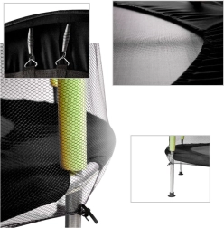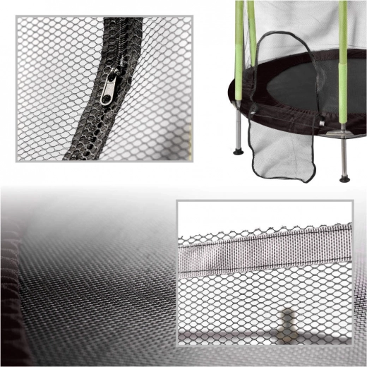 Das Schutznetz umschließt die Sprungfläche fest, und der Eingang mit doppeltem Reißverschluss verhindert ein unbeabsichtigtes Öffnen. Gepolsterte Pfostenabdeckungen schützen vor Stößen, sodass Kinder unbeschwert spielen können.