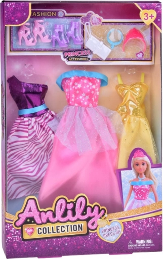 Das ANLILY-Modekleidungsset ist perfekt für Kinder, die Stil und Design lieben. Es enthält drei verschiedene Kleider - jedes mit einzigartigem Schnitt und Farbe, zwei elegante Paare Absätze, eine stylische Tasche, eine blaue Halskette und eine zarte Krone, die ideal für jede kleine Prinzessin ist.
