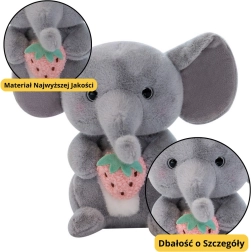 Der Plüschelefant kann ein großartiger Begleiter für tägliches Spielen, Reisen, Kindergarten oder ruhigen Schlaf werden. Seine kompakte Größe sorgt für einfaches Mitnehmen. Der Elefant hat große Ohren, einen freundlichen Ausdruck und hält eine Plüscherdbeere, die ihn einzigartig macht.
