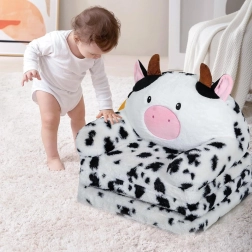 Das bezaubernde Design mit charakteristischen schwarz-weißen Flecken, einem freundlichen Gesicht, einer rosa Nase, abstehenden Ohren und weichen Hörnern zieht sofort die Aufmerksamkeit der Kinder auf sich und bringt eine fröhliche und gemütliche Atmosphäre in den Raum. Das Kuhmotiv passt perfekt zur Dekoration des Kinderzimmers und wird zu einem funktionalen Zubehör.