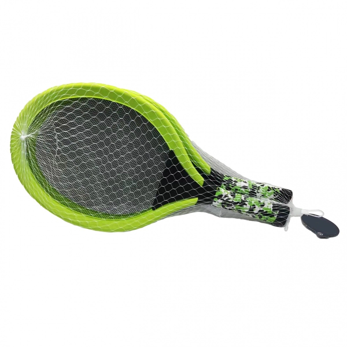 Genießen Sie den Strandspaß mit diesem Set aus leuchtenden Schlägern und Ball, geeignet für die ganze Familie.