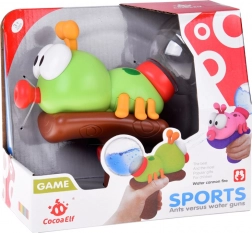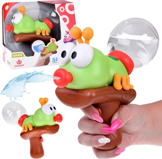 Wasserpistole Käfertier zieht die Aufmerksamkeit mit ihrem bajoker Aussehen auf sich – sie hat große Augen, niedliche Fühler und einen offenen Mund, aus dem Wasser gespritzt wird, wenn der Abzug betätigt wird. Das Spielzeug hat einen bequemen, bunten Griff, der als Griff und Abzug fungiert.