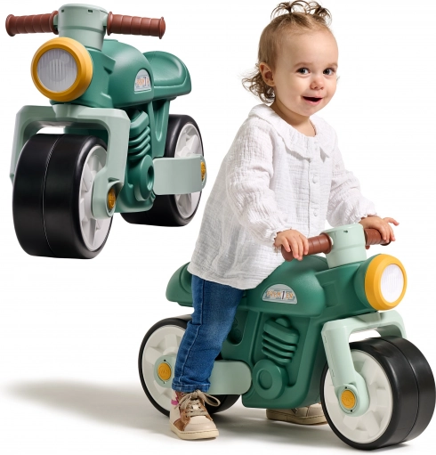 Kinderlaufrad Motorrad Falk Retro Grün mit leisen Rädern für Stabilität und Sicherheit. Geeignet ab 1 Jahr. Max. Belastung 25 kg.