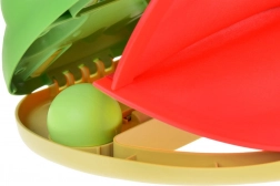 • Legen Sie einen Ball in das Maul des Frosches, als ob er auf der Zunge liegt.