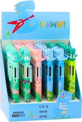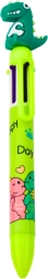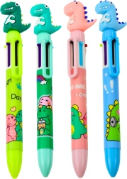 Kreativer und praktischer Stift mit Dinosauriermotiv für Kinder, der 6 verschiedene Farbnachfüllungen in einem Gehäuse enthält, was ihn zum idealen Begleiter für schulische Aktivitäten macht. Die fröhliche Figur an der Spitze verleiht dem Stift einen spaßigen Look.