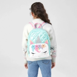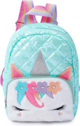 Magischer Kinder Rucksack mit Einhornmotiv und pastellfarbener Färbung, weicher Textur und glänzender gesteppter Oberfläche. Ideal für Kinder im täglichen Gebrauch in Kindergarten, Schule oder auf Ausflügen.