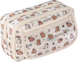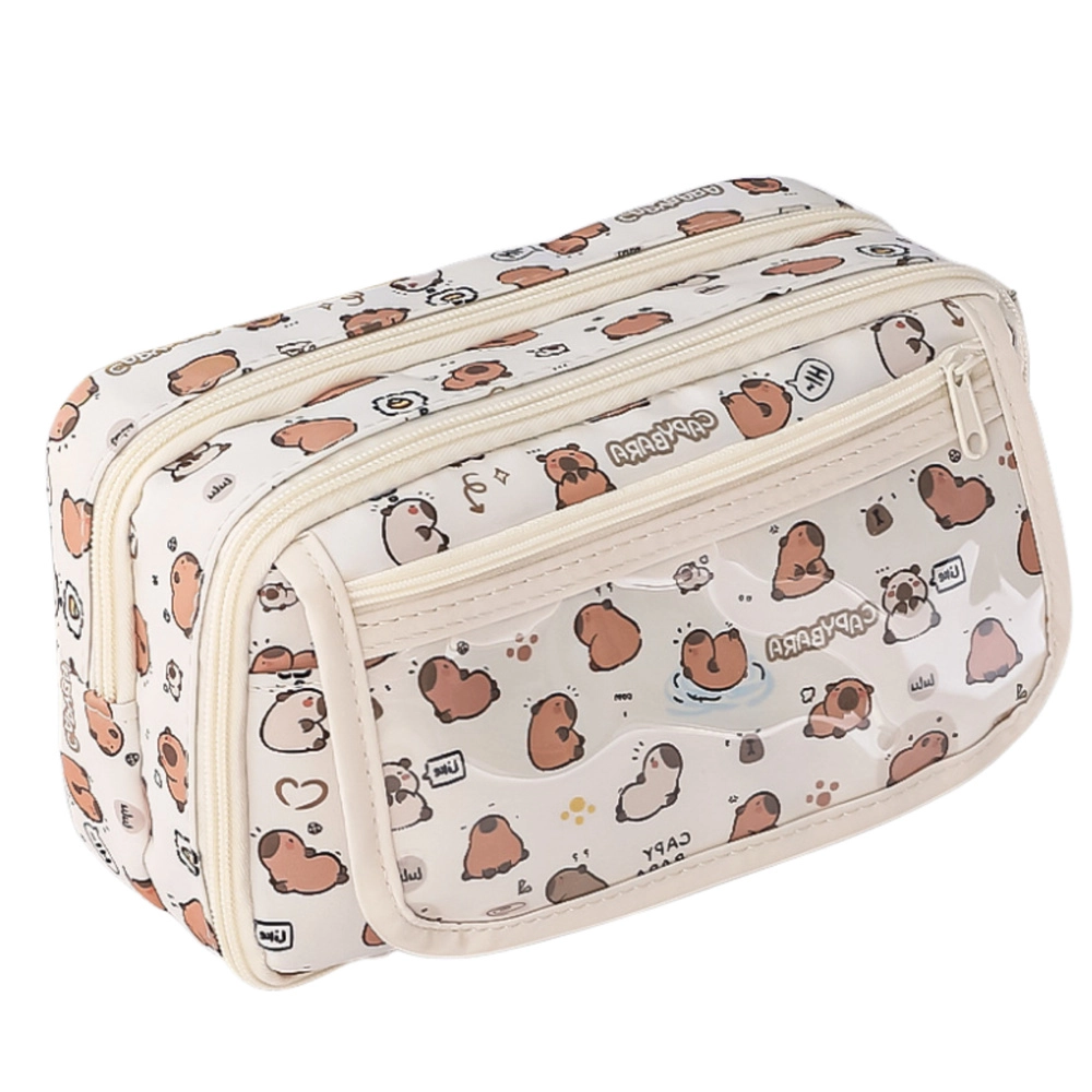 Großes und funktionelles Mäppchen mit Capybara-Motiv ist ideal für Schüler, die Praktikabilität und niedliches Design schätzen. In Cremeton mit sympathischem Capybara-Druck sticht das Mäppchen unter anderen Schulmaterialien hervor. Es ist geeignet für Schule, Universität, Kunstunterricht oder das Homeoffice.