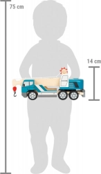Der Kinderkran besteht aus hochwertigem Holz, Gummi, Metall und Stoff, was Langlebigkeit und eine lange Lebensdauer gewährleistet. Er eignet sich für Kinder ab 2 Jahren.