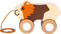 Dieses Ziehspielzeug ist entworfen, um die Entwicklung motorischer Fähigkeiten zu unterstützen und die Mobilität zu fördern. Die robuste Konstruktion auf gummierten Rädern ermöglicht eine reibungslose und leise Fahrt, die ideal für jeden Spaziergang ist.