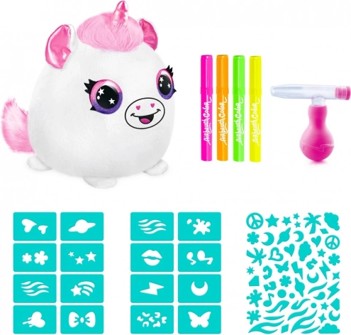 Airbrush kreative Neon-Set wird Sie lange unterhalten. Es enthält ein Plüschtier, ein Airbrush-Werkzeug, verschiedene Stifte und zahlreiche Schablonen, die unendliche Gestaltungsmöglichkeiten bieten.