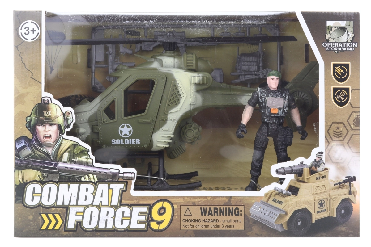Entdecken Sie die Welt der militärischen Abenteuer mit diesem Militärset, das einen Hubschrauber von ungefähr 22 x 13 cm Größe enthält. Dazu gibt es einen Soldaten und verschiedene Waffen für extra actionreichen Spaß.