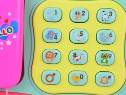 Entdecken Sie dieses bunte Musiktelefon für Kinder, das viel Spaß und lehrreiche Funktionen bietet. Jede Taste auf dem Telefon spielt nicht nur verschiedene Melodien und Geräusche ab, sondern ist auch mit Bildern von Tieren und Zahlen auf Englisch gekennzeichnet. Beim Abheben des Hörers ertönt das Klingelgeräusch eines Telefons mit einer Willkommensmelodie, während beim Auflegen ein charakteristisches Geräusch des Auflegens erklingt.
