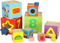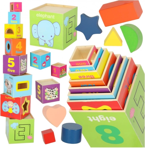 Die Würfel fördern die Entwicklung von Sprach- und mathematischem Geschick, Formenerkennung und Präzision.