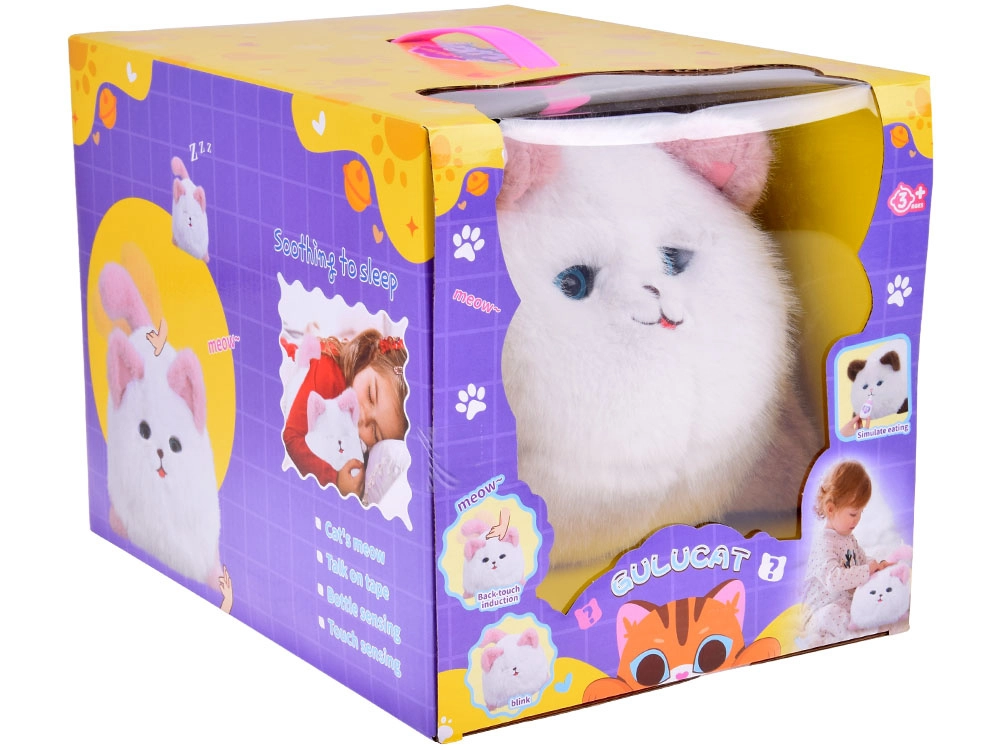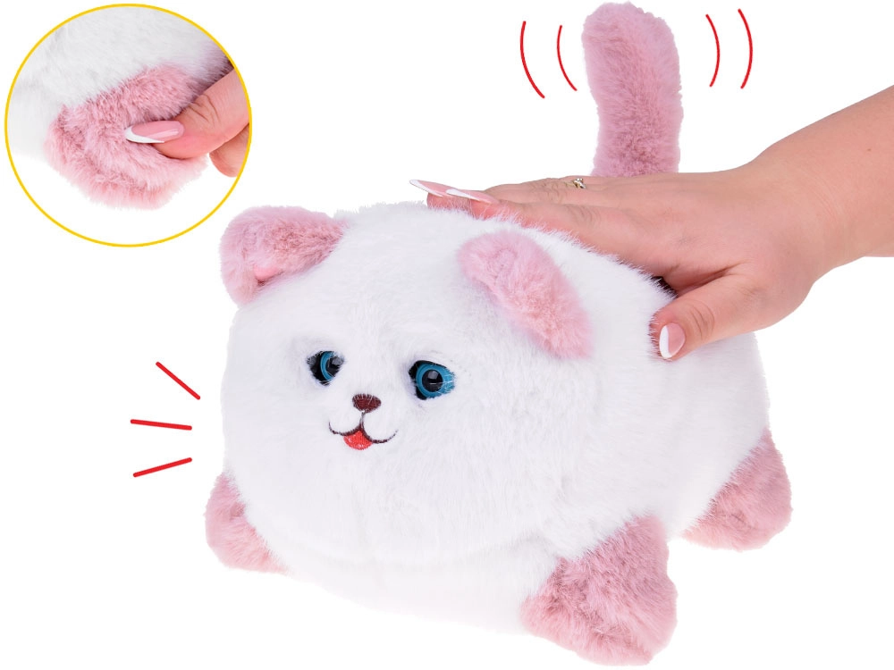 Lernen Sie die Katze Pusia kennen, ein interaktives Spielzeug, das wie Ihr echtes Haustier ist. Diese weiche weiße Katze mit rosa Pfoten und Schwanz verfügt über beeindruckende Sound- und Bewegungsfunktionen. Beim Streicheln des Rückens werden miauen und schnurren aktiviert - ergänzt durch Schwanzbewegungen und zwinkernde Augen, die realistische Erlebnisse erzeugen.