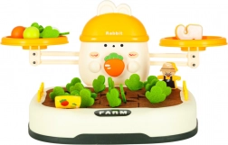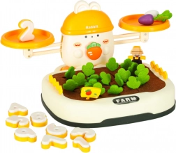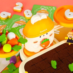 Der obere Teil des Sets wird von einem niedlichen Hasen gesteuert – er überwacht das Gleichgewicht. Kinder können Karotten und andere Gegenstände stapeln, um das Gleichgewicht zu halten oder es absichtlich zu stören und damit die Grundlagen der Physik zu lernen. Es enthält auch spezielle Zahlen mit entsprechenden Gewichten, die beim Vergleich von Gewichten und dem Verständnis von Zahlenwerten lernen.