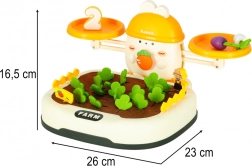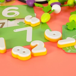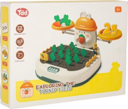 Ein speziell gestaltetes Brett mit Öffnungen ermöglicht es Kindern, die Genauigkeit der Bewegungen zu üben - Karotten zu platzieren und herauszuziehen hilft, motorische Fähigkeiten zu entwickeln und führt ein gesunden Wettbewerbselement in Form des Spiels „Wer erntet schneller“ ein.