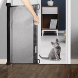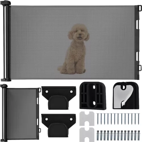 Das ausziehbare Gitter funktioniert wie ein flexibles Rollo aus starkem Netzgewebe, das Sichtbarkeit und Luftzirkulation ermöglicht und zugleich eine sichere Barriere bildet. Dank der einfachen Wandmontage und eines Hakens auf der gegenüberliegenden Seite lässt es sich mit einer Hand öffnen und schließen und nimmt eingerollt kaum Platz ein.