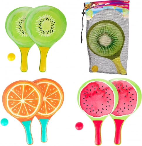 Dieses beliebte Strandtennis-Set kombiniert frische Obstdesigns mit hervorragender Handhabung. Dank der leichten Schläger und dem weichen Ball ist es ideal für Kinder ab 3 Jahren sowie Erwachsene, die eine unkomplizierte, aber unterhaltsame Bewegung im Freien suchen. Der praktische Netzbeutel ermöglicht schnelles Abtrocknen und einfaches Mitnehmen.