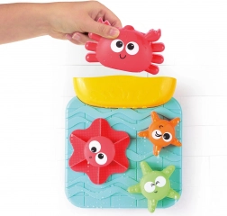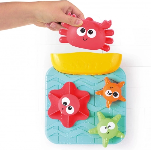 Entdecken Sie die Magie des Wassers mit der spielerischen Wassermühle für die Badewanne. Das Saugnapfsystem hält das Panel sicher an Ort und Stelle, sodass Kinder mit der Schöpfkelle Wasser in den Behälter gießen und beobachten können, wie bunte Räder und Meeresformen ins Rollen kommen. Dank leuchtender Farben und freundlicher Motive wird das Baden zum Lieblingsmoment des Tages.