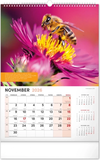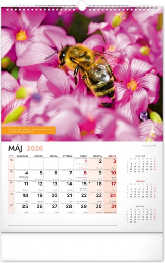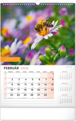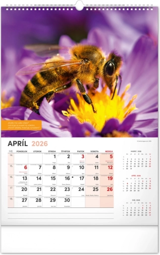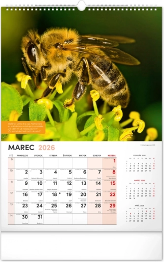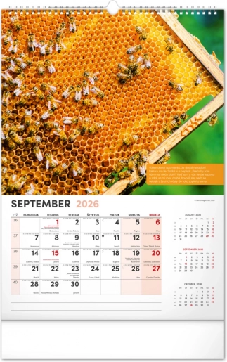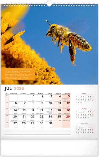 Der Kalender enthält das tschechische Kalendarium inklusive Namenstagen und Feiertagen, Gedenktagen sowie Zeiten für Sonnenaufgang und Sonnenuntergang. So behalten Sie immer den Überblick und den Plan zur Hand, und wissen genau, wann die richtige Zeit ist, zum Bienenstock zu gehen.