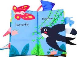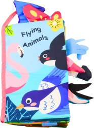 Weiches sensorisches Buch mit Bildern von Vögeln ist ein ideales pädagogisches Spielzeug für die Kleinsten. Das Buch besteht aus sicheren, weichen Materialien unterschiedlicher Textur, die dem Kind helfen, die Sinneswahrnehmung und manuellen Fähigkeiten zu entwickeln.