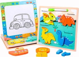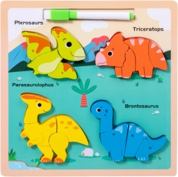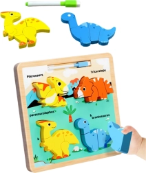 Dieses Holz Lernpuzzle mit Dinosaurier-Motiv bietet eine einzigartige Kombination aus Spaß und Bildung. Auf der bunten Tafel finden Sie vier entzückende Dinosaurier - Pterosaurier, Triceratops, Parasaurolophus und Brontosaurus. Jeder dieser Dinosaurier besteht aus mehreren Teilen, die das Kind an die richtige Stelle setzt, was ihm hilft, Formen, Farben und die Namen prähistorischer Kreaturen zu erkennen.