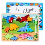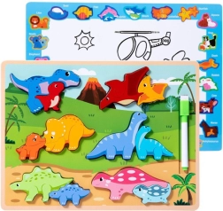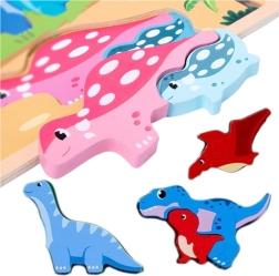 Dieses hölzerne Bildungs-Puzzle enthält 12 bunte Dinosaurier, die das Kind an die richtigen Stellen legt, was die Entwicklung logischen Denkens und Konzentration unterstützt. Darüber hinaus fördert es manuellen Geschick und Fantasie.
