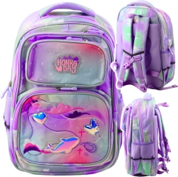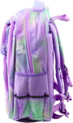 Der Schulrucksack in pastellfarbenen Tönen von Blau, Lila und Rosa ist die ideale Wahl für Kinder, die Funktionalität mit stilvollem Aussehen kombinieren möchten. Der Rucksack bietet zwei geräumige Fächer, das Hauptfach ist mit einem praktischen Trenner für einfache Organisation von Büchern und Heften ausgestattet.