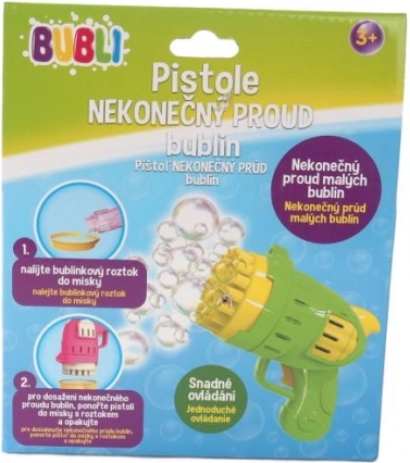 Unterhaltsame Blasenpistole mit endlosem Blasenstrom, geeignet für Kinder ab 3 Jahren. Großartig für Sommerspiele.