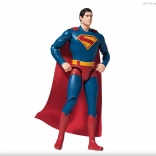 Der texturierte blaue Anzug, der rote Umhang und das erhabene „S“-Emblem sorgen für einen authentischen Comic-Look.