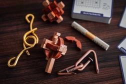 Jedes Rätsel ist sorgfältig gestaltet, um selbst für die erfahrensten Löser eine Herausforderung zu sein. Genießen Sie die Kombination aus Holz und Metall, die eine Harmonie zwischen antiker Ästhetik und modernem Design bildet.