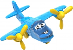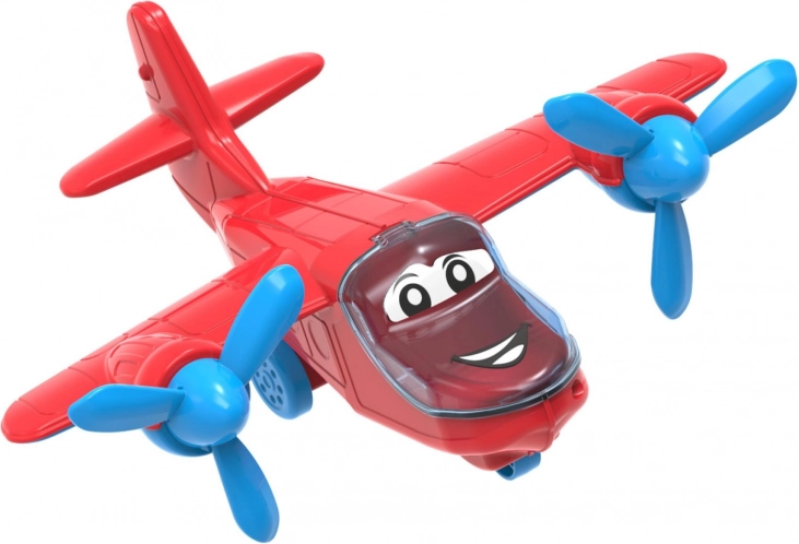 Das verspielte Kunststoffflugzeug mit freundlichem Gesicht ist jederzeit startklar – sein Freilauf sorgt für eine gleichmäßige Fahrt über den Boden, ganz ohne Batterien. Die öffnende Kabine ermöglicht Kindern einen Blick ins Innere oder das Platzieren eigener Mini-Figuren, was kreative Geschichten und Rollenspiele fördert.