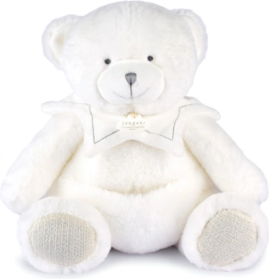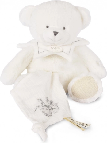 Der Bär ist mit einer Decke ausgestattet, die leicht in seinem Bauch verstaut werden kann, was beim Reisen oder Aufbewahren sehr praktisch ist. Doudou ist mit feiner Stickerei und Satinbändern mit französischen Aufschriften verziert, die jedem Kuscheln Sanftheit verleihen.