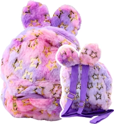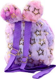 Der Rucksack ist aus weichem Plüsch gefertigt und mit glitzernden, goldfarbenen Sternen versehen. Die oben hervortretenden Ohren verleihen einen märchenhaften Charme und die gesamte Kombination aus Pastellfarben ist kinderfreundlich. Der Rucksack hat ein Hauptfach mit Reißverschluss und eine kleinere Vordertasche, ideal für kleine Gegenstände.