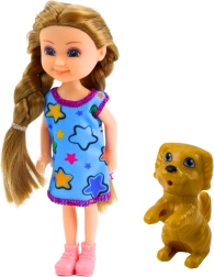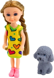 Machen Sie Ihren Kindern mit einem Set Freude, in dem eine Puppe mit einer Größe von 14,5 cm in bunter Kleidung alle Blicke auf sich zieht und der Figur Charakter verleiht. Die Hundefigur begleitet die Puppe im Spiel, was es ermöglicht, Aktivitäten wie gemeinsame Spaziergänge, Füttern, Pflege oder Spielen im Park nachzustellen.