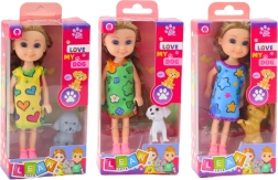 Mini Puppe in Kleidern mit Hund 14,5 cm