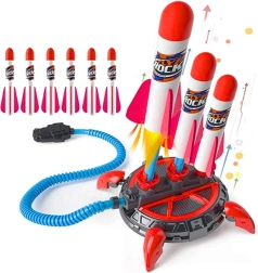 Werde zum kleinen Weltraumforscher und schieße Schaumstoffraketen bis zu 30 Meter hoch! Sicherer, luftbetriebener Spaß mit Fußpumpe, weichen Schaumstoffraketen und stabilem Standfuß für aktives Spielen draußen und zu Hause.