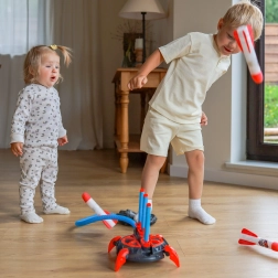 Diese multifunktionale Schaumstoff-Raketenabschuss-Station bringt Kindern ab 6 Jahren viel Bewegung, Freude und Entdeckergeist. Einfach auf die Pumpe treten und die weichen Schaumraketen steigen sicher in die Höhe. Der stabile Standfuß nimmt mehrere Raketen gleichzeitig auf und sorgt für einfaches, schnelles Starten.