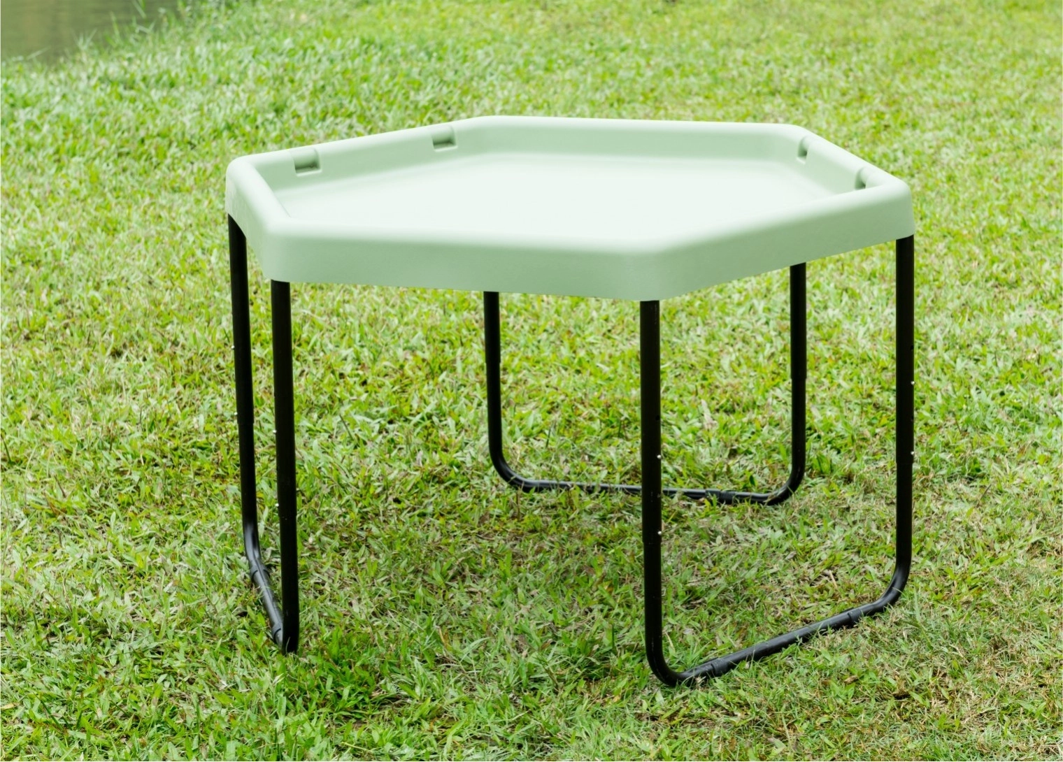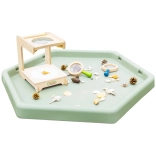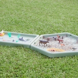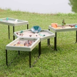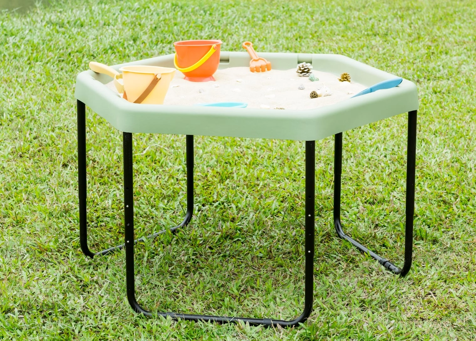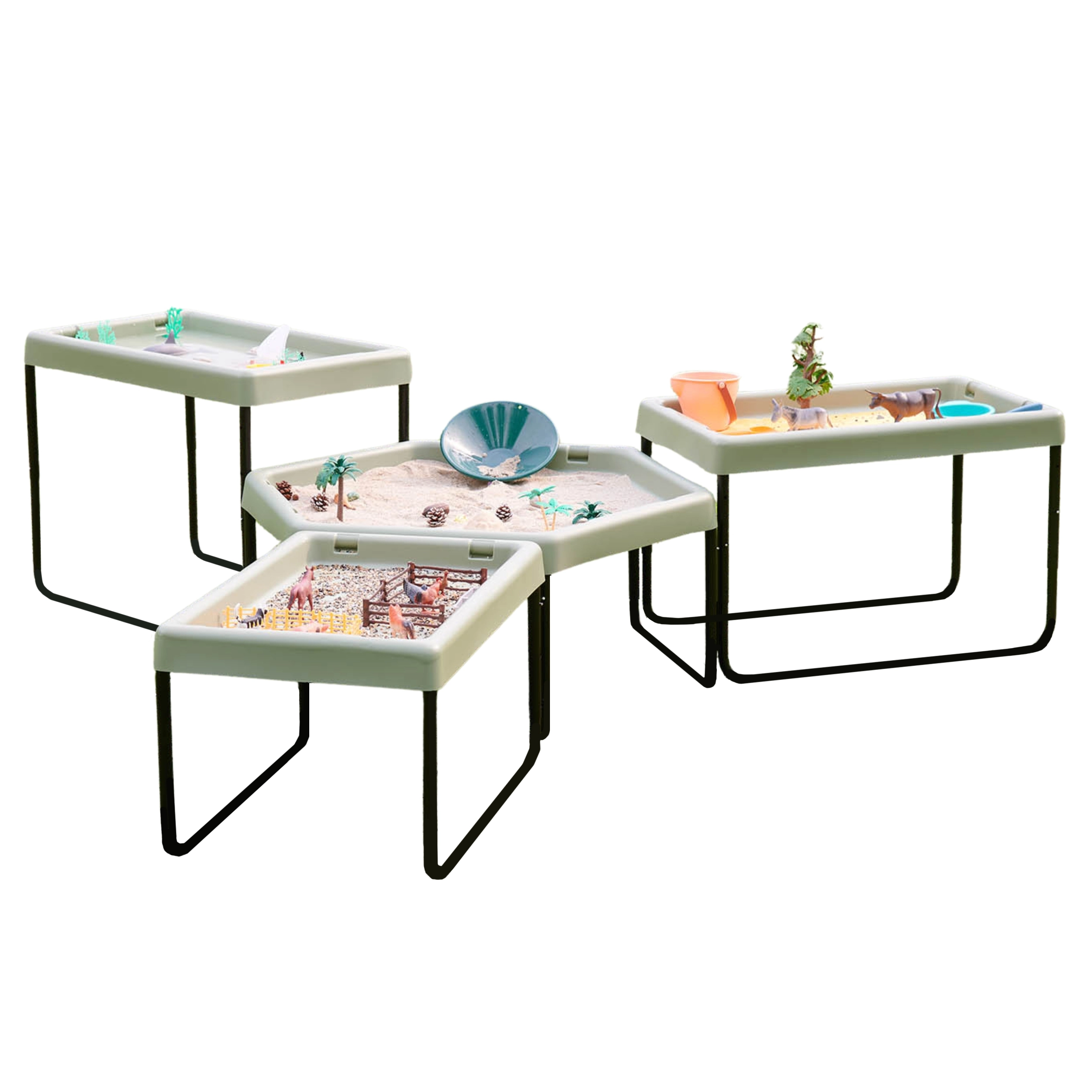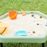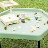 Der sechseckige Tisch ermöglicht es Kindern, ihre Kreativität beim Spielen mit Sand, Wasser oder kleinen thematischen Welten zu entwickeln.