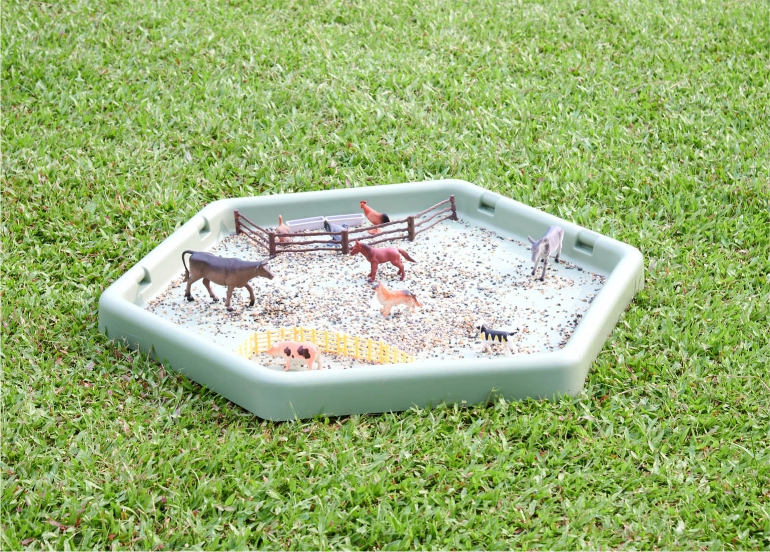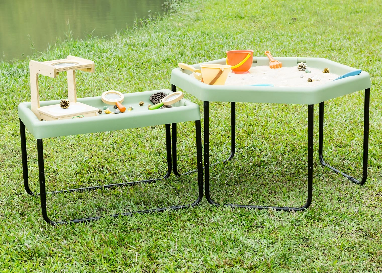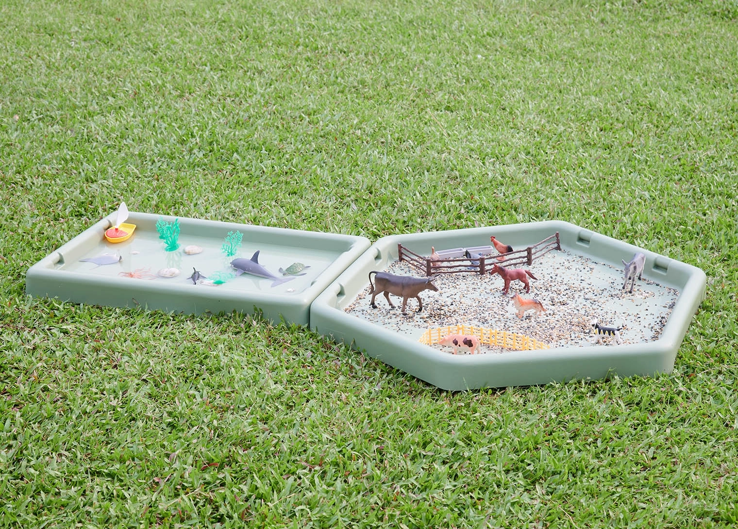 Der sechseckige Tisch ermöglicht es Kindern, ihre Kreativität beim Spielen mit Sand, Wasser oder kleinen thematischen Welten zu entwickeln.