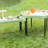 Der Tisch ist leicht und einfach zu transportieren, was seine Nutzung an verschiedenen Orten wie Gärten oder Kinderecken erleichtert.