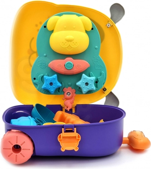 Dieser tragbare Koffer verwandelt sich in einen kleinen Wasser-Sandkasten, der Kinder zu Hause, im Garten oder am Strand begeistert. Dank des umfangreichen Zubehörs genießen Kinder kreatives Gestalten mit Sand und zugleich das Entdecken von Wassereffekten. Das Spielzeug fördert die Feinmotorik, die Kreativität und die sensorische Wahrnehmung.