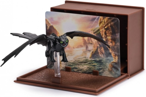 Drachenfiguren mit Karten im Drachenbuch „Drachenzähmen leicht gemacht“