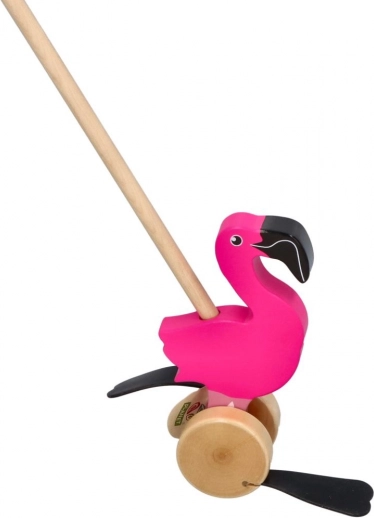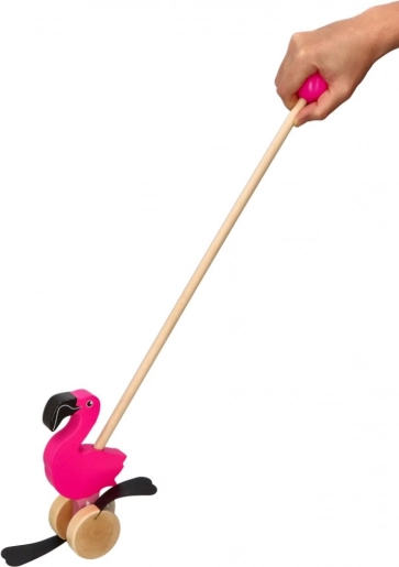 Der Holz-Flamingo am Stab ist der ideale Begleiter für die ersten Schritte. Dank leichtgängiger Räder und stabiler Konstruktion lässt er sich mühelos schieben, während bewegliche Elemente einen unterhaltsamen Effekt erzeugen, der Kinder zum Laufen und Entdecken motiviert.