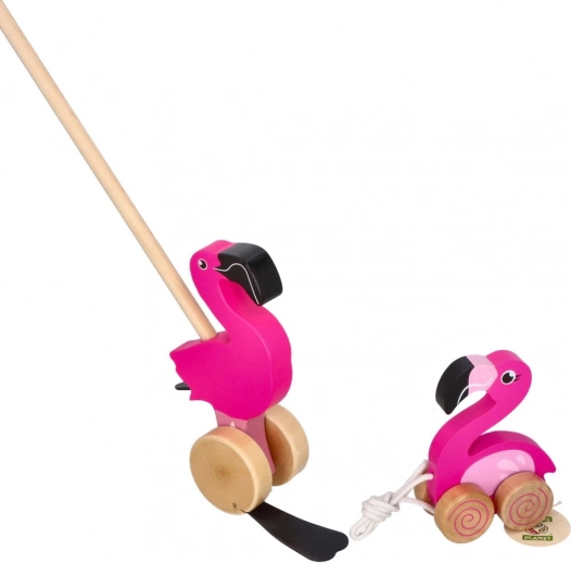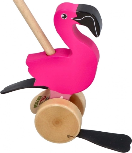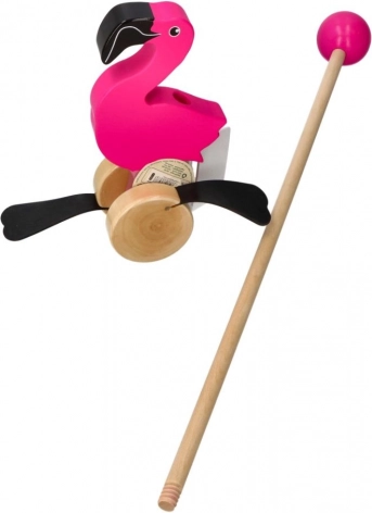 Beim Schieben wackeln die Beinchen/Flügel des Flamingos lustig, schaffen visuelle Reize und halten die Aufmerksamkeit der Kinder.