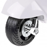 Dieser elektrische Kinderroller im VESPA-Design begeistert jeden kleinen Fahrer. Die kompakten Abmessungen eignen sich für die Wohnung und Spaziergänge im Park, während die seitlichen Stützräder bei den ersten Fahrten für Stabilität sorgen. Realistische Elemente wie Frontlicht, Instrumententafel (Aufkleber) und Hupe am Lenker sorgen für ein authentisches Erlebnis.